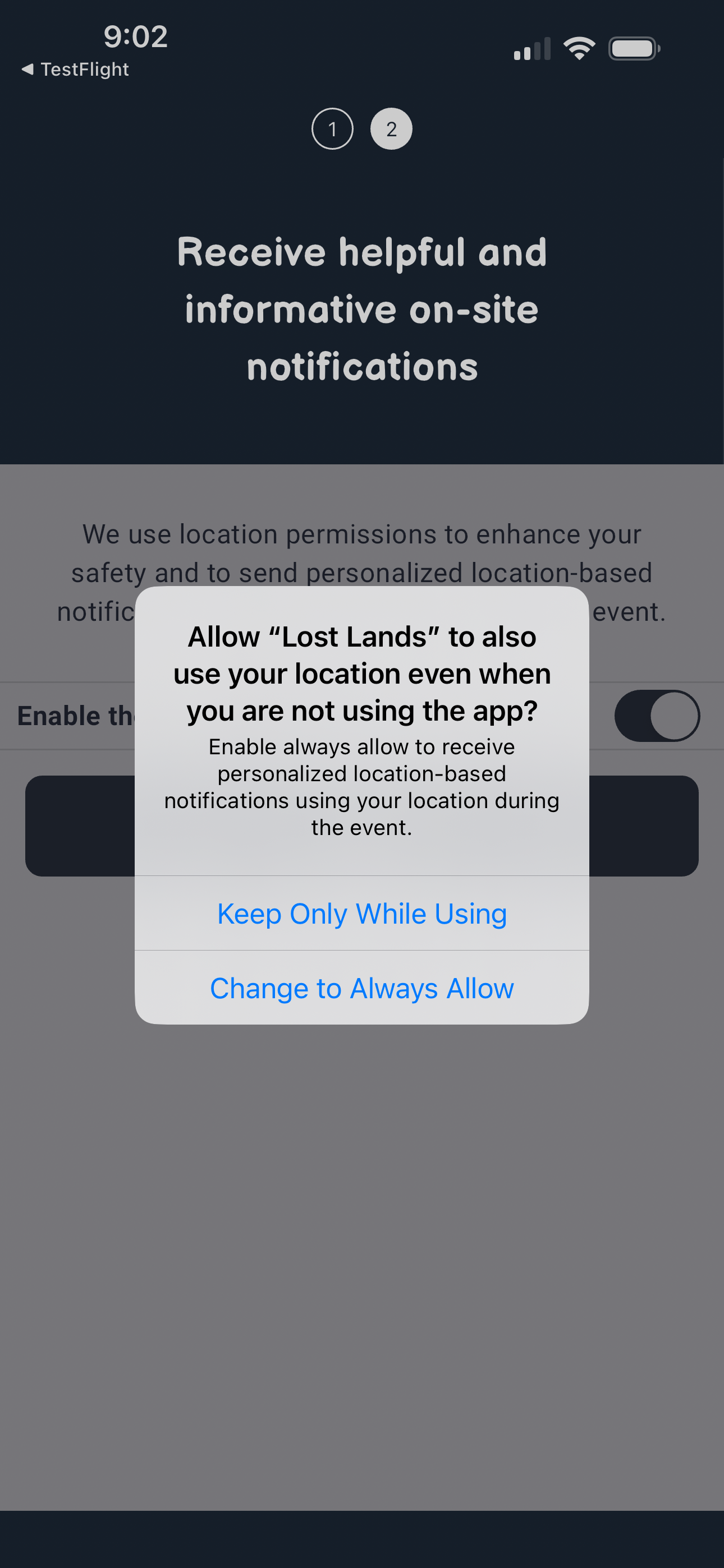 - The "Always Allow" location prompt
